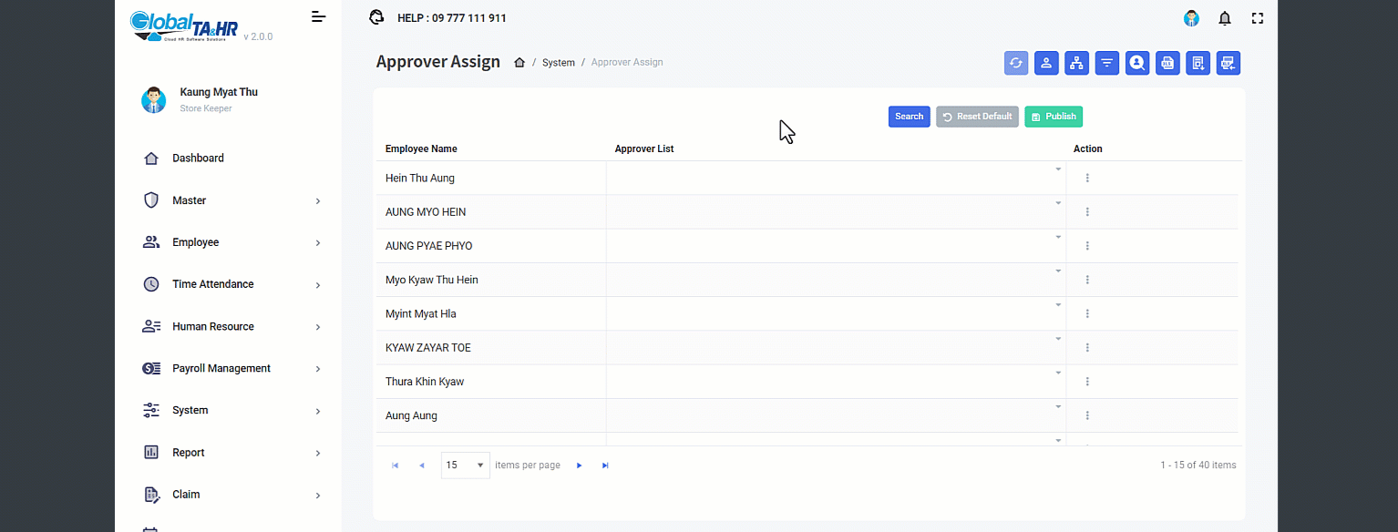 Remark: Approver များသည် Employee List ထဲမှာ ရှိပြီးသူများသာ ပြန်လည် သတ်မှတ်နိုင်မည်ဖြစ်ပါသည်။
