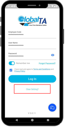 - Clear Setting? ဆိုသည့် စာသား ကို Log In button အောက် Login Page တွင် တွေ့ရပါမည်။