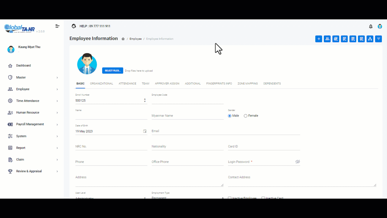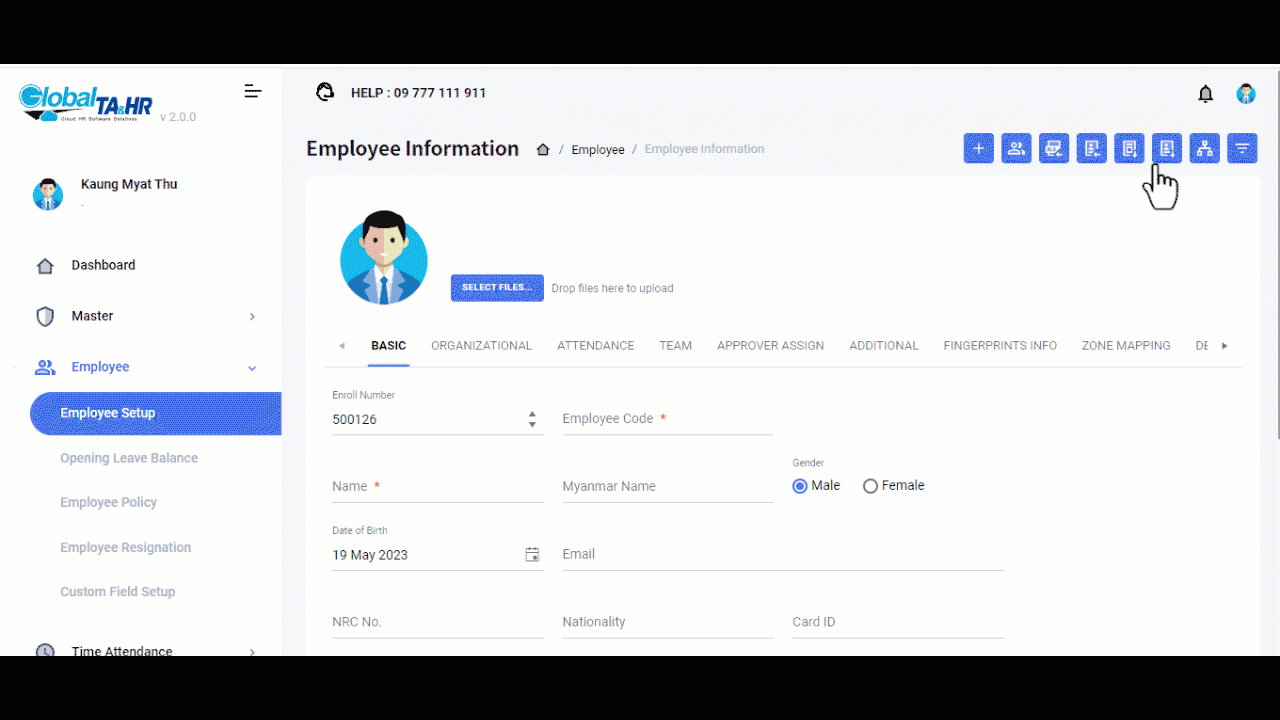 Master Setup – Basic Menu များကို အရင်တည်ဆောက်ထားမှသာ ၀န်ထမ်းအချက်အလက်များ ထည့်သွင်းလျှင် အဆင်သင့်ရွေးချယ်နိုင်မည်ဖြစ်ပါသည်။