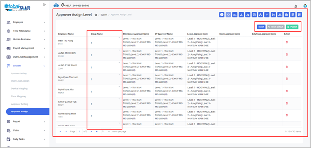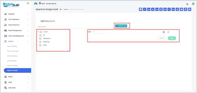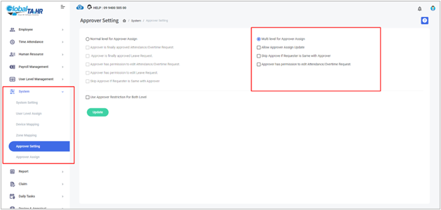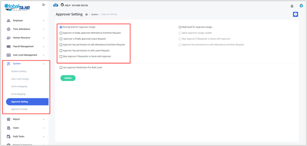 - Navigate to “System” > “Approver Setting” > “Normal Level for Approver Assign”.