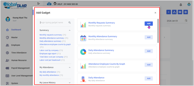 - Click “ + Add Gadget icon” or “ Add Gadget”