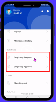 - View the list of approved and pending Duty Swaps.