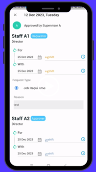 - Approver confirmation: Supervisors or managers can approve or reject swap requests based on designated settings.