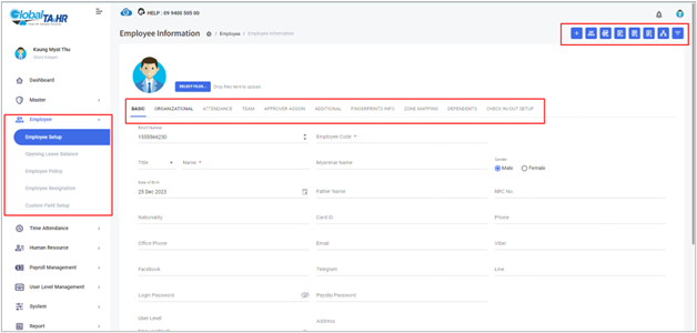 - Multiple Tab Menus: Organize employee information into categories for easy access and management.