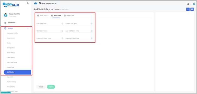 - Click on Shift Policy.