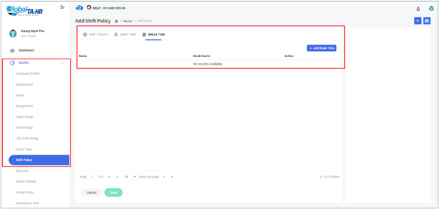 - Click the “ Break Time” tab.