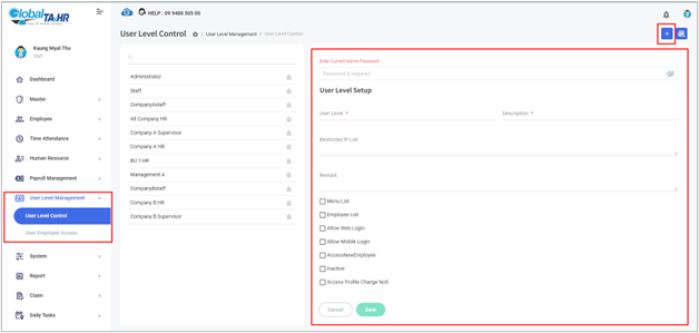 - User Level Permission: Control which user levels can be seen and managed by other user levels.