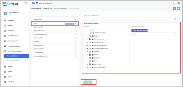 - Define and control user access to system features and employee data based on roles and responsibilities.