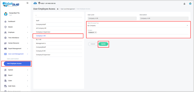 - Select “Permission Type” (By Employee, By Department, By Company).