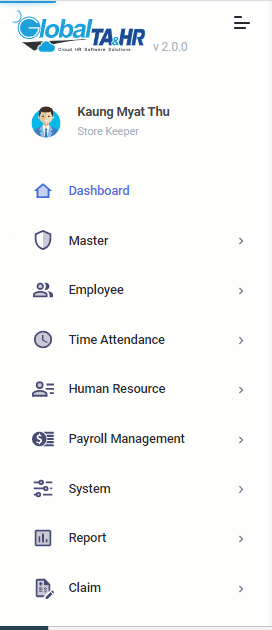 - Attendance: အလုပ်တက်ရောက်မှု၊ အလုပ်တက်ရောက်မှုဆိုသည်မှာ အလုပ် ၀င်ချိန်/ထွက်ချိန်၊ ခွင့်၊ အချိန်ပိုနာရီများတို့ ပါ၀င်ပါသည်။