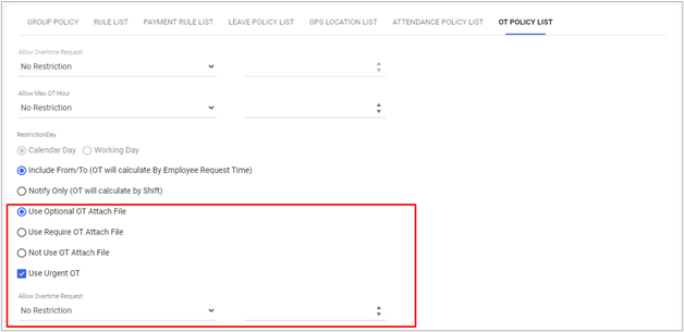 ဘယ် OT policy ဆို ဘယ် Shift တွေ တွက်မည်ဆိုတာမျိုးများအပြင် OT ဘယ်နှနာရီ တွက်လျှင် ဘယ်လောက်ပြန်နှုတ်မည် ဆိုတာမျိုးများကိုပါ သတ်မှတ်လို့ ရသည့် နေရာဖြစ်ပါသည်။