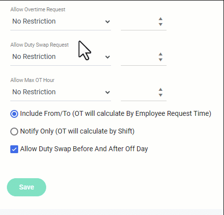 - Allow Duty Swap Before And After Off Day