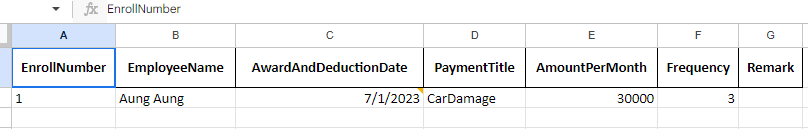Step7: Fill the Award and Deduction data in Excel.