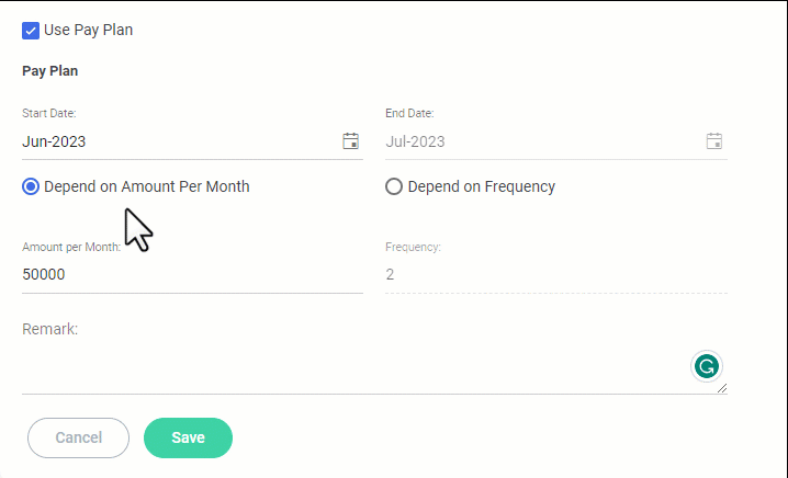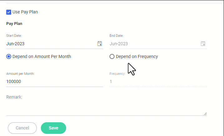 If choose Depend on Amount Per Month,