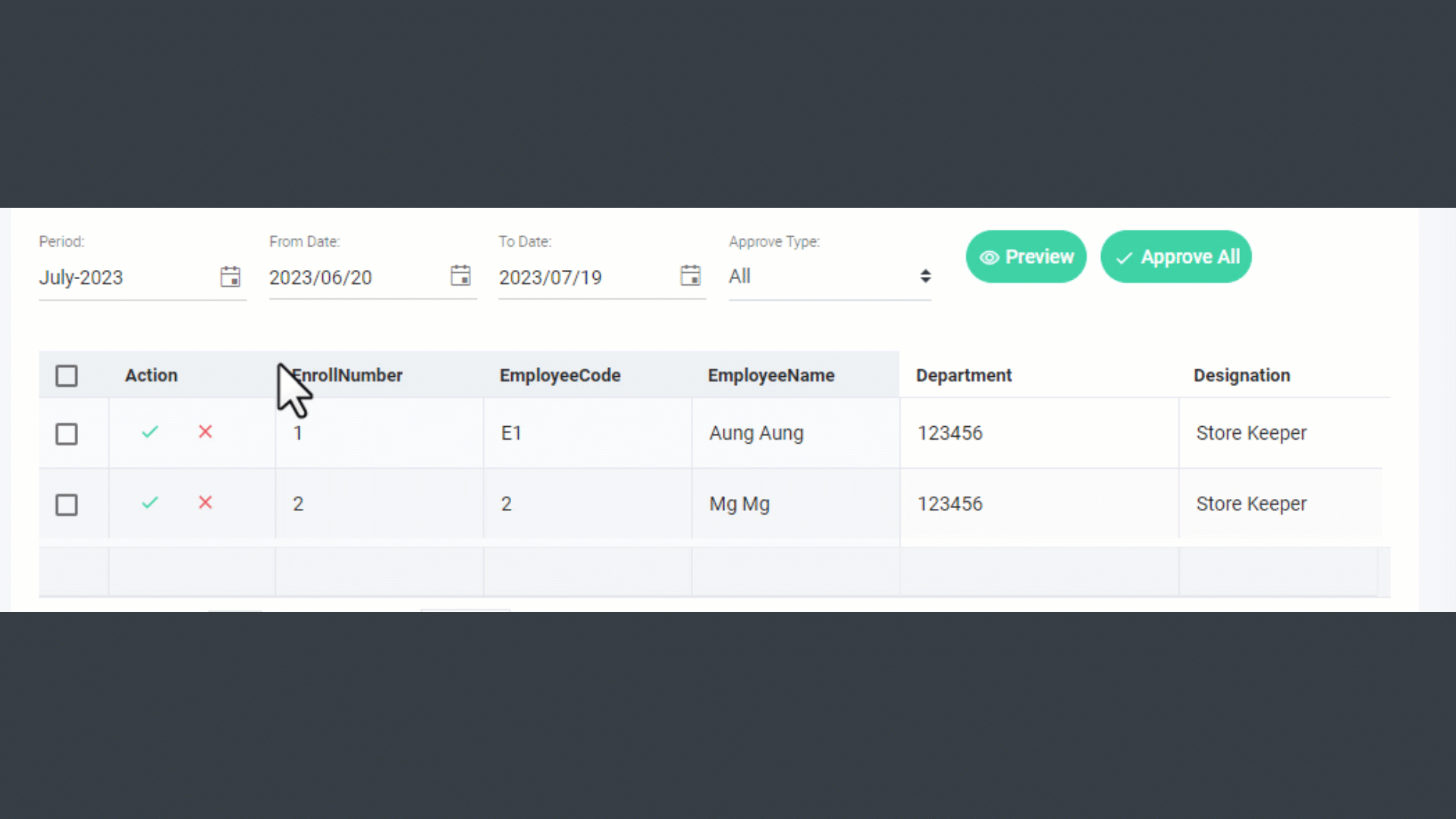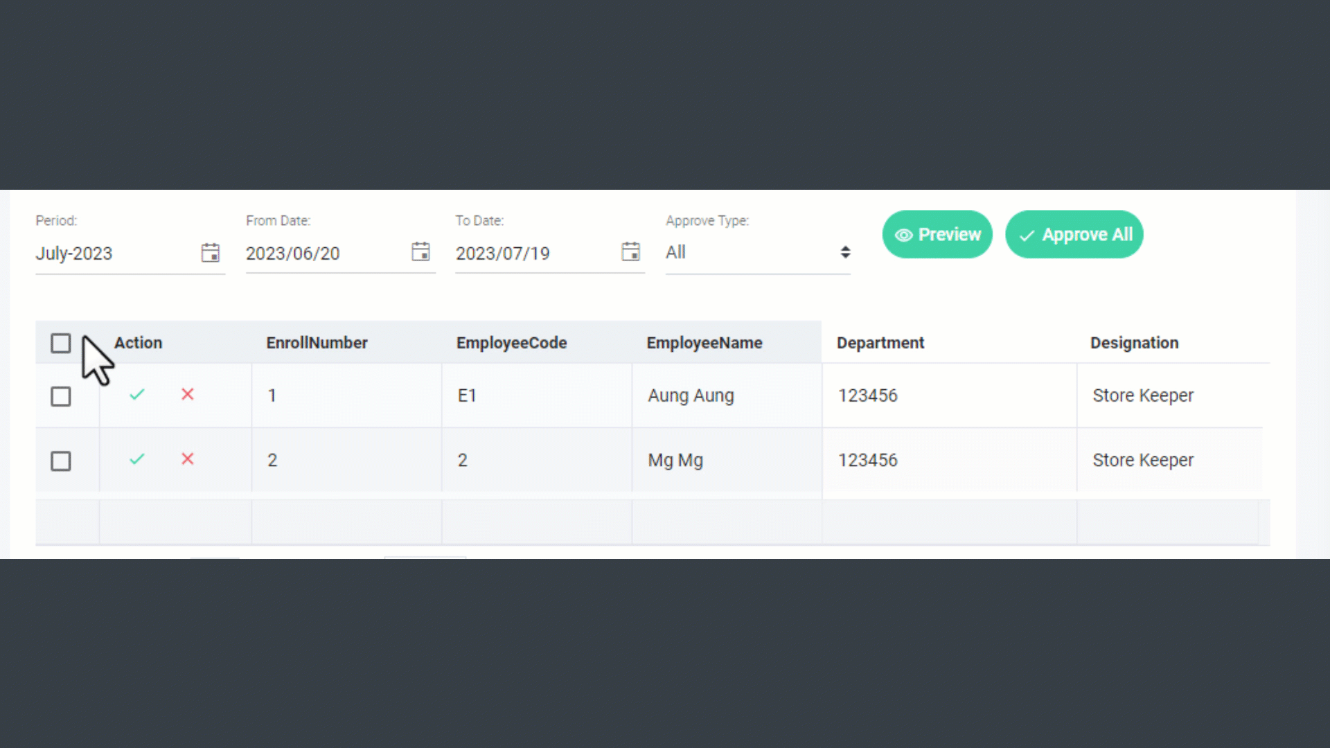 the Employee > Click “Approve All”.